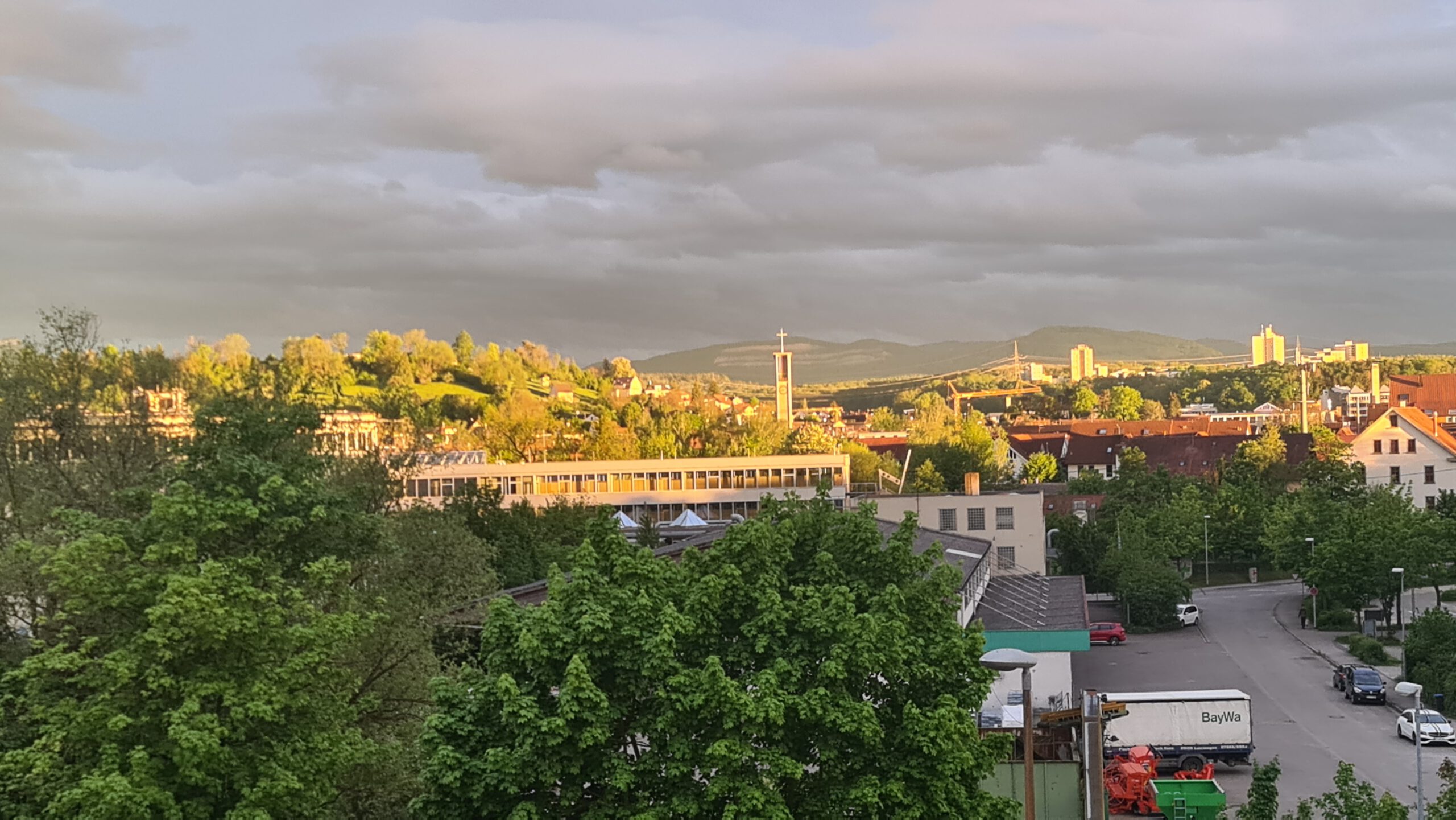 Dieses Gemälde ist über der Tiefgarageneinfahrt im Gebäudekomplex an der Schömbergstraße angebracht. Ich frage mich, was die Person, die es angebracht hat, dazu motiviert hat. Und an welche Heimatlandschaft es erinnert.