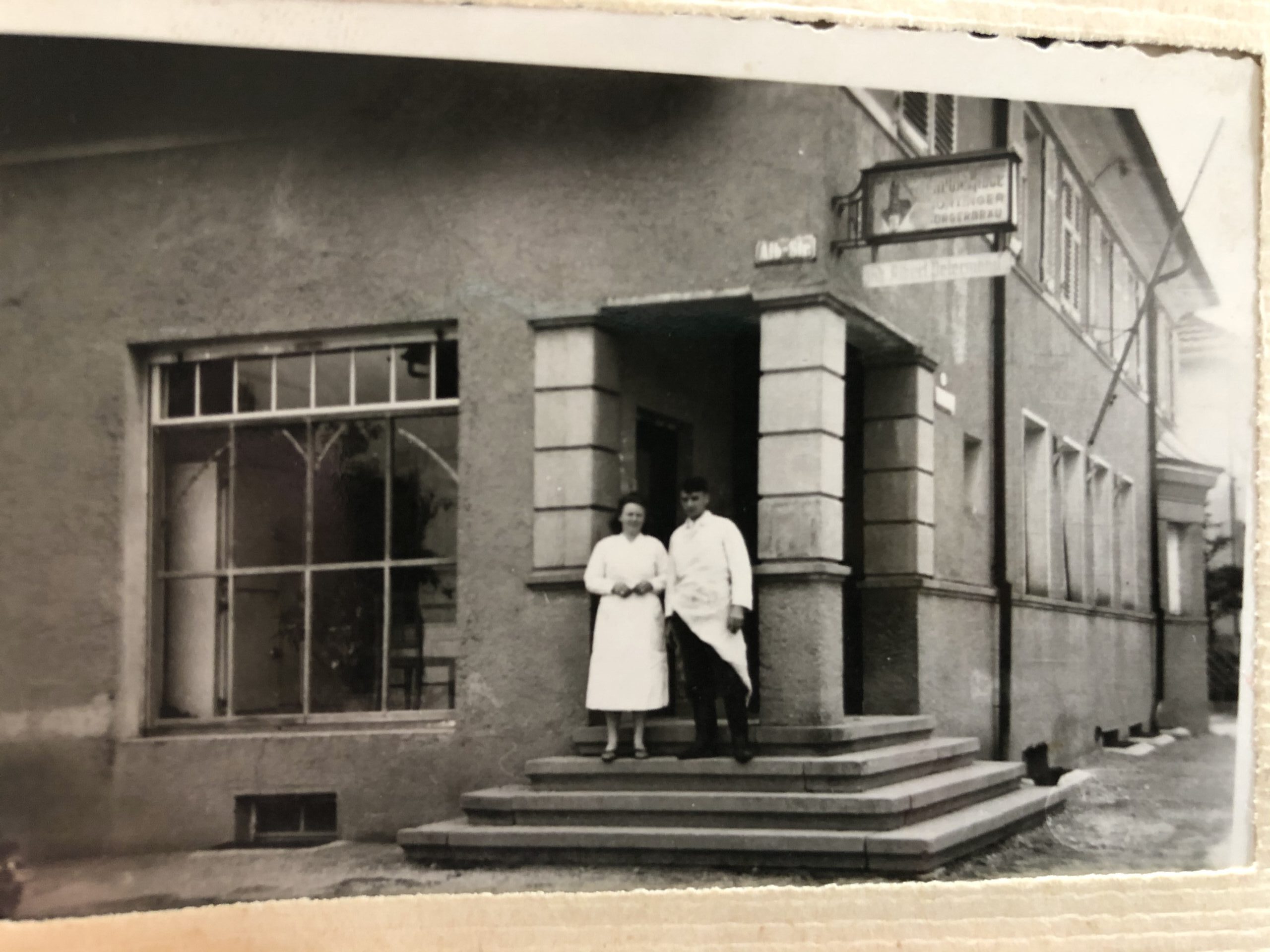 Hier ist ein Bild von der Siedlerstube , Ecke Albstrasse / Neuffenerstrasse, wahrscheinlich kurz vor dem Krieg, als meine Großeltern die Metzgerei und Wirtschaft frisch übernommen hatten. Es ist erstaunlich, wie oft man auch zwanzig Jahre nach der Schließung der Metzgerei noch darauf angesprochen wird und wie stark meine Eltern und Großeltern den Leuten im Gedächtnis geblieben sind.